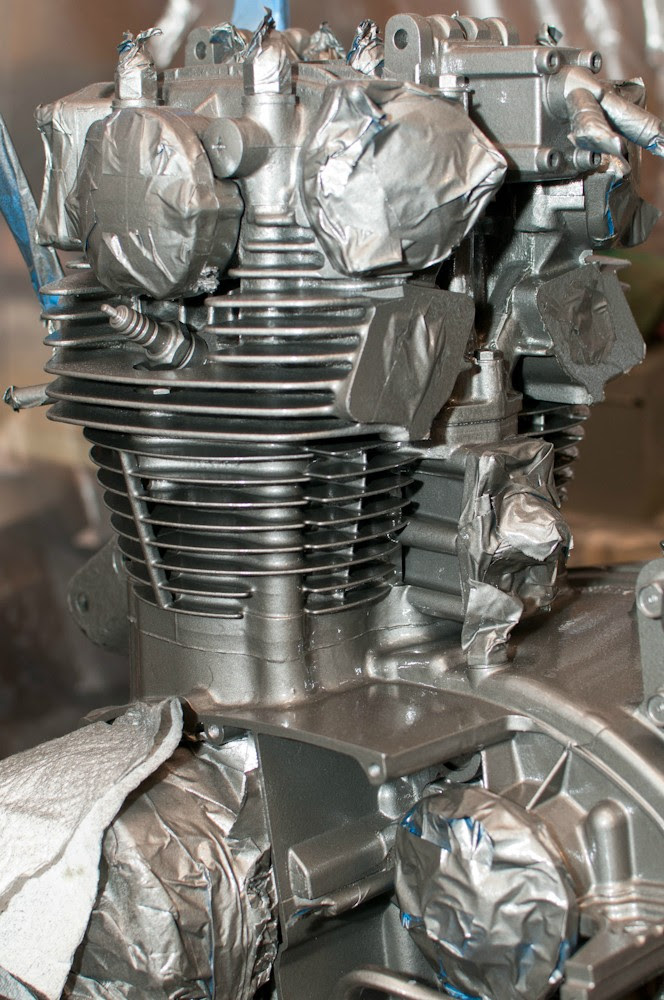 | There were a lot of very hard to reach areas on this motor, making it very difficult to apply paint evenly. It took 4 coats and a LOT of sanding to get it right. |